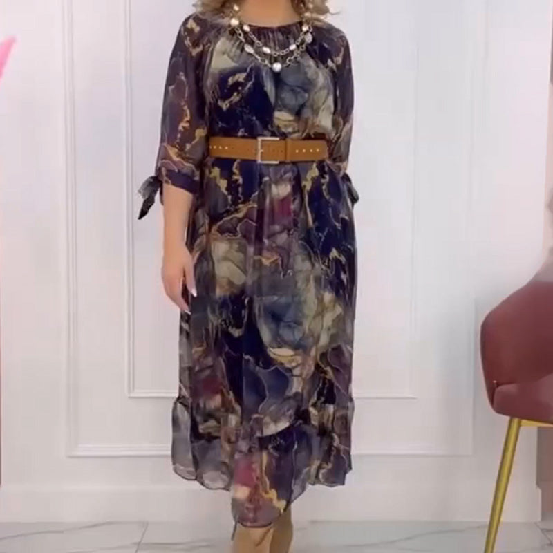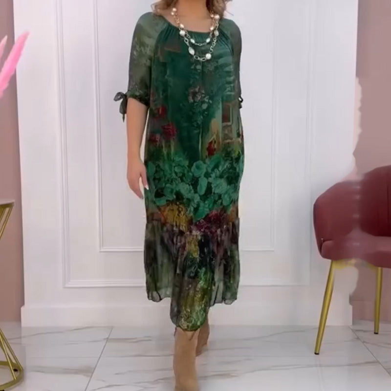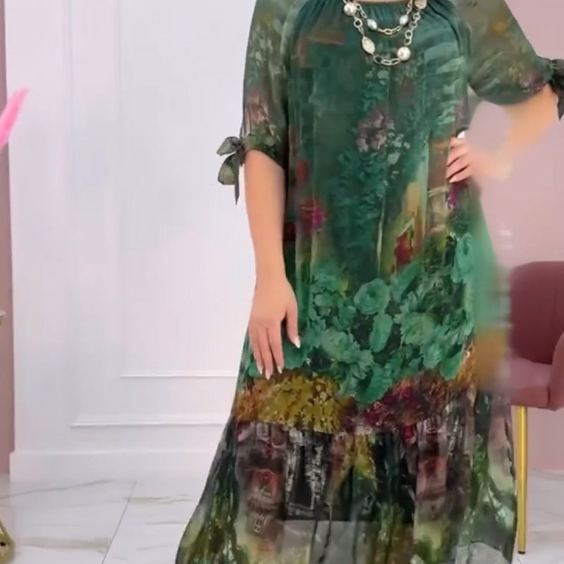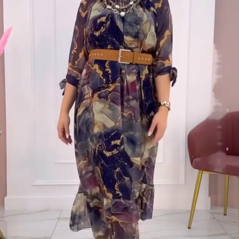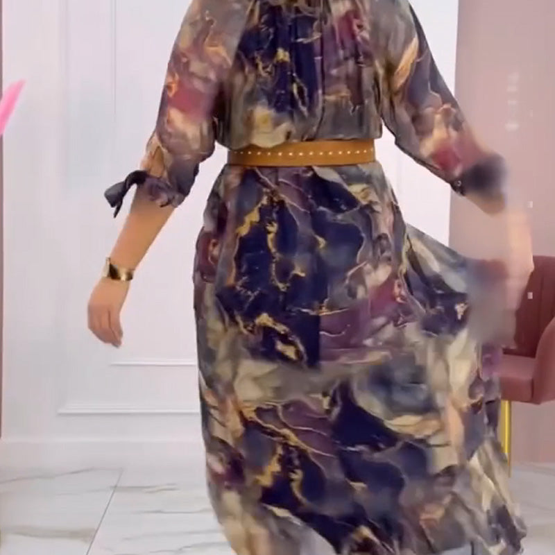 Ez a ruha széles, lengő ujjakkal, amelyek minden mozdulatnál táncolnak, magára vonzza a figyelmet. Laza, légáteresztő sifon felsővel párosítva ez a ruha a bohém stílust ötvözi a könnyed eleganciával, tökéletes egy kerti partira, villásreggeli randira vagy esti sétára.