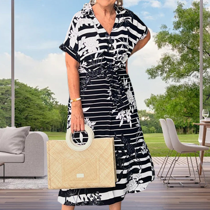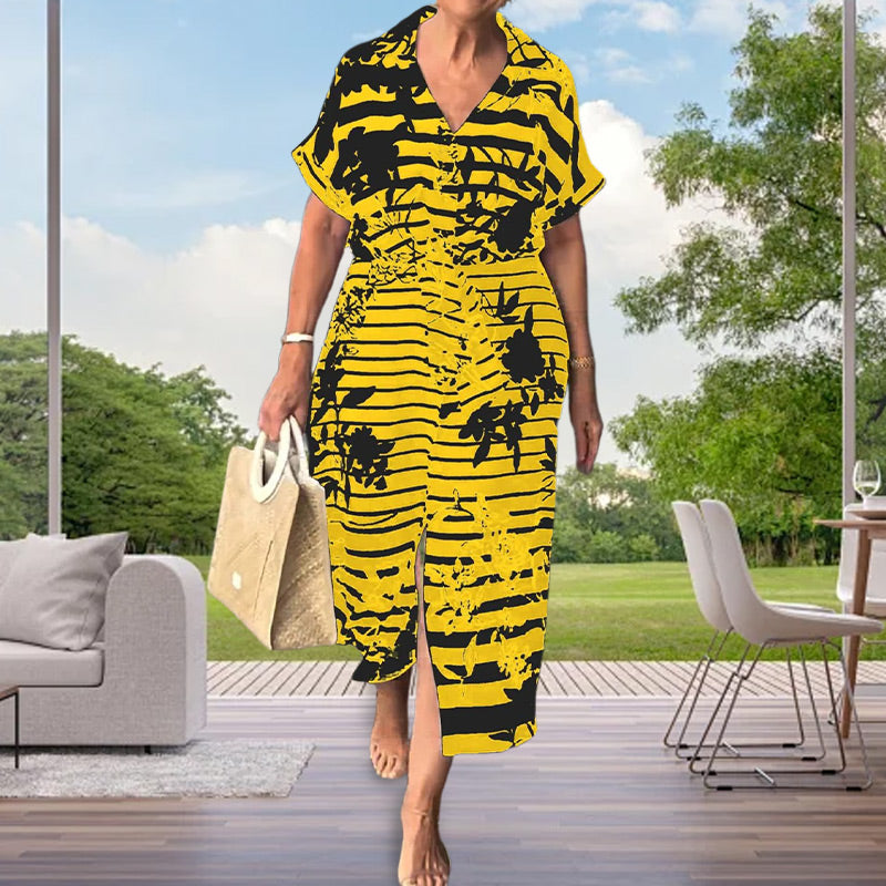 Szállítási terjedelem: 1 * Rövid ujjú ruha virágmintával és alul résszel.