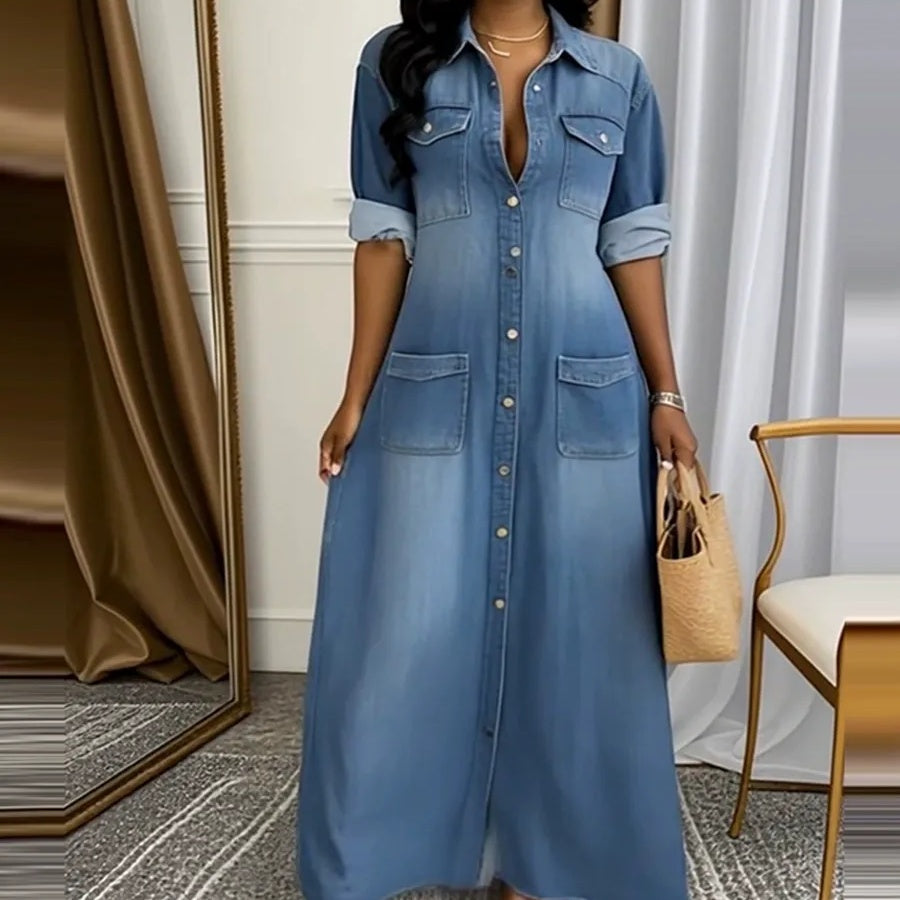 Stílusos gombos dizájn: A klasszikus, teljes gombos előlappal ez a ruha időtlen sokoldalúságot és kényelmet kínál, amelyet tetszés szerint állíthatsz be.