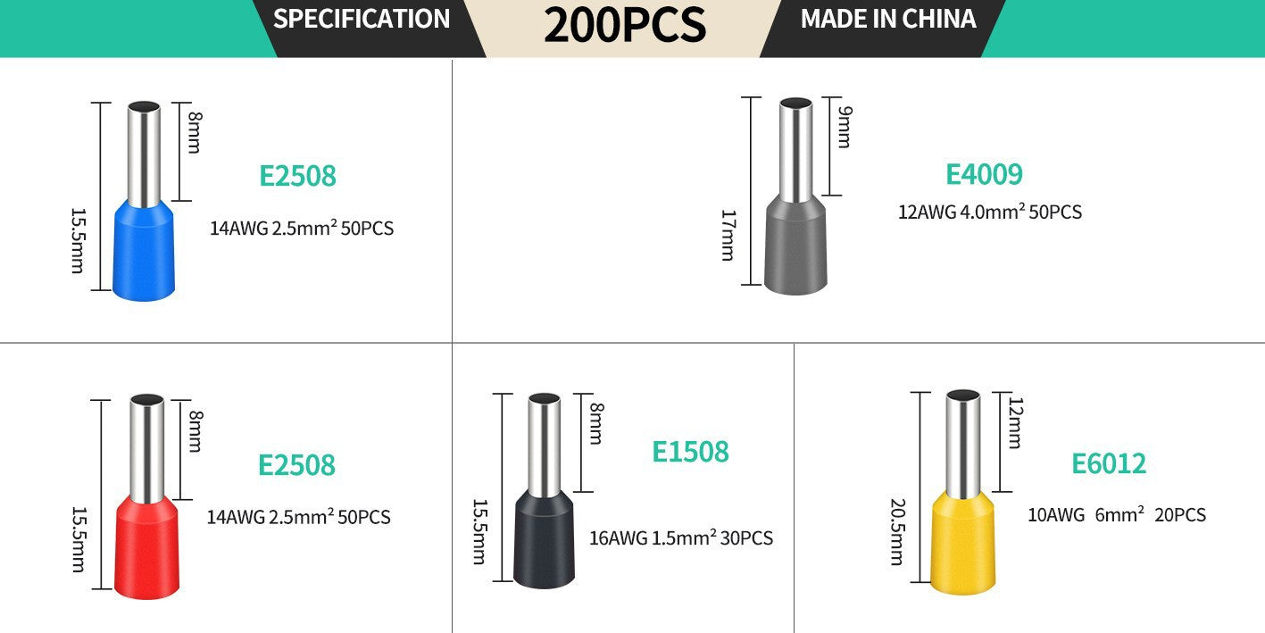 A csomag tartalma: 200/300/400/800 * kábel szigetelő véghüvely