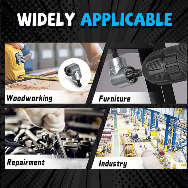 105 FOKOS SZÖGTERVEZÉS – Bővíti a fúrógép hatótávolságát szűk sarkokba és keskeny helyekre. Lehetővé teszi csavarok becsavarozását vagy lyukak fúrását olyan helyeken, ahol egy hagyományos fúrógép nem fér el, ami növeli a hatékonyságot.
