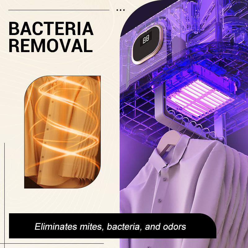 FERTŐTLENÍTŐ HATÁS – A készülék nem csak szárít, hanem a tisztaság fenntartásában is segít. A forró levegő elpusztítja a baktériumokat és a poratkákat, míg a beépített negatív ion technológia semlegesíti a szagokat. Így ruháid nemcsak szárazak lesznek, hanem higiénikusan biztonságosak és tiszta illatúak is.