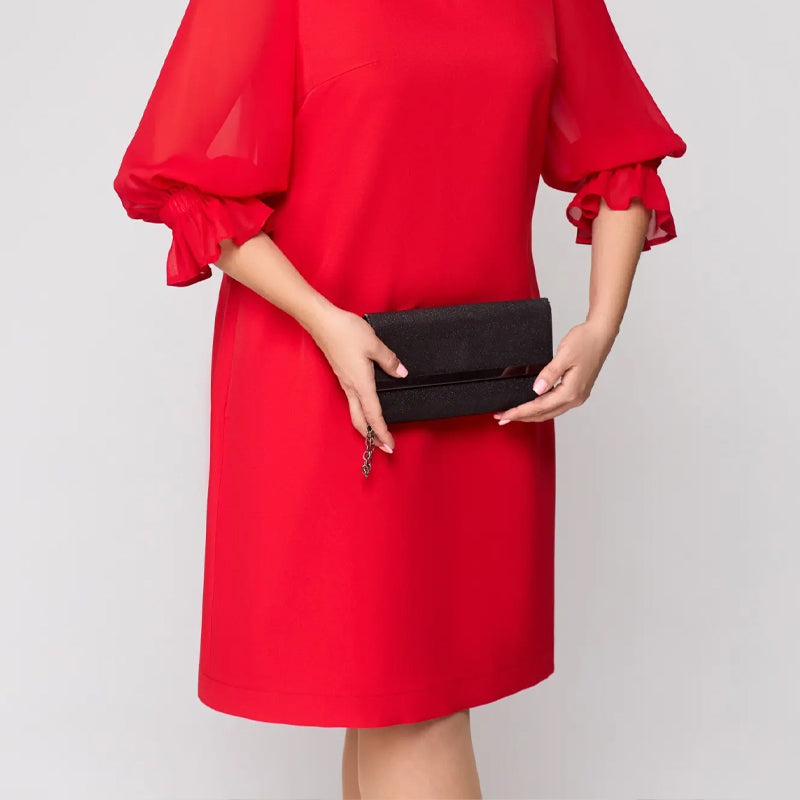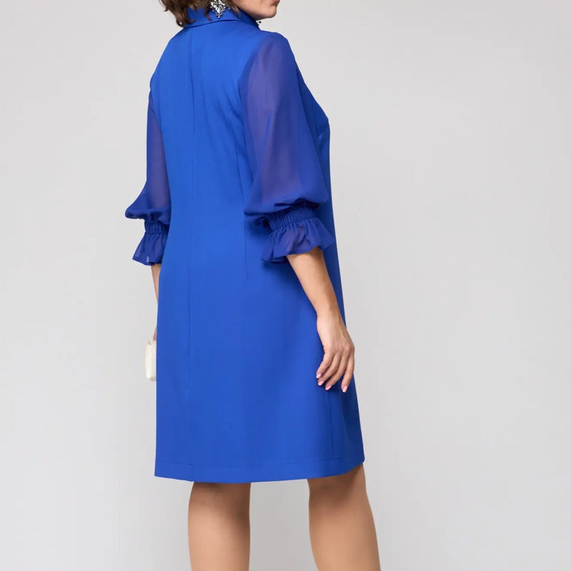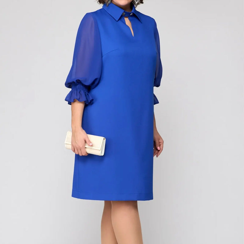 DIVATOS LÁMPA UJJAK: A szemet gyönyörködtető, 3/4-es hosszúságú lámpás ujjak játékos, mégis kifinomult bájt kölcsönöznek, fokozva a ruha divatos vonzerejét.
