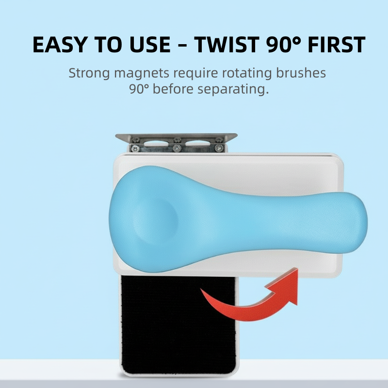 ERŐS MÁGNESES ERŐ – Biztosítja a tisztító mindkét részének biztonságos összekapcsolását az üvegen keresztül, hatékony és egyenletes tisztítóerőt biztosítva anélkül, hogy a alapos tisztítás során meg kellene nedvesíteni a kezét.