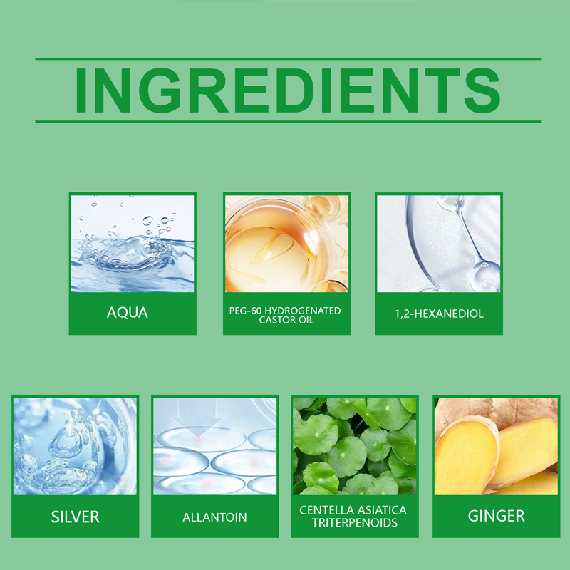 Segédanyagok: víz, PEG-60 hidrogénezett ricinusolaj, 1,2-hexándiol, kolloid ezüst, allantoin