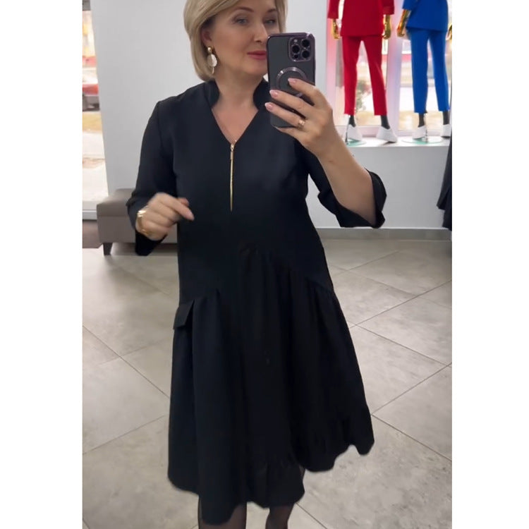 A csomag tartalmaz 1×Fekete V-nyakú ruha hölgyeknek