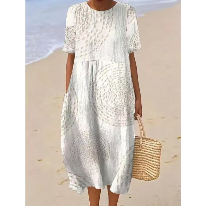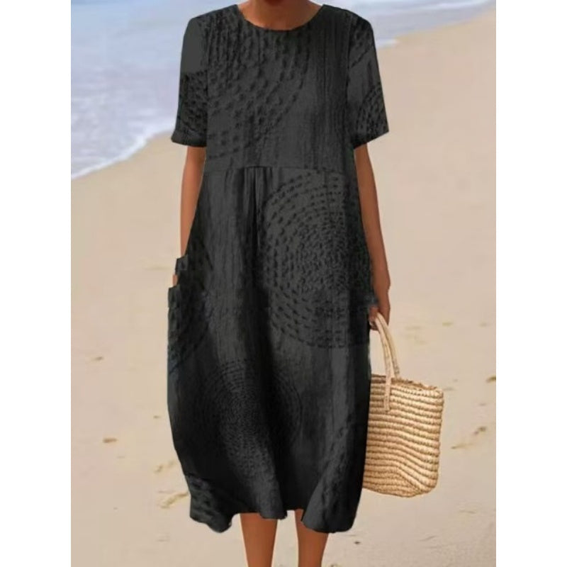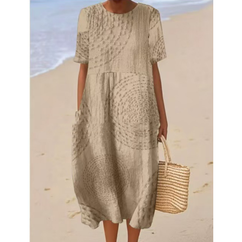 LAZA, LAZA SZABÁS: A kényelem érdekében tervezett midi ruha laza, laza szabású, könnyű mozgást és légáteresztő képességet biztosít, így tökéletes alkalmi, mindennapi viseletre.