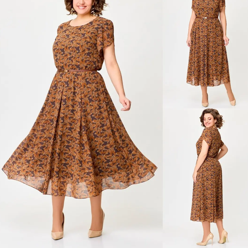 ELEGÁNS NYOMTATOTT DESIGN: Tegyen elegáns nyilatkozatot ezzel az elegáns maxiruhával, melyben egy vintage ihletésű nyomtatás található. A kifinomult barna színpaletta időtlen megjelenést biztosít, amely könnyedén változik az évszakok között. A mellékelt öv személyre szabható derékmeghatározást ad, így több sziluettet is létrehozhatsz egyetlen sokoldalú ruhával.