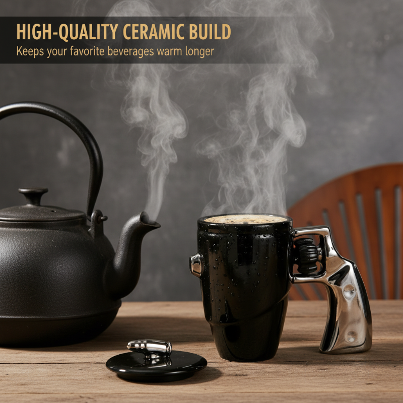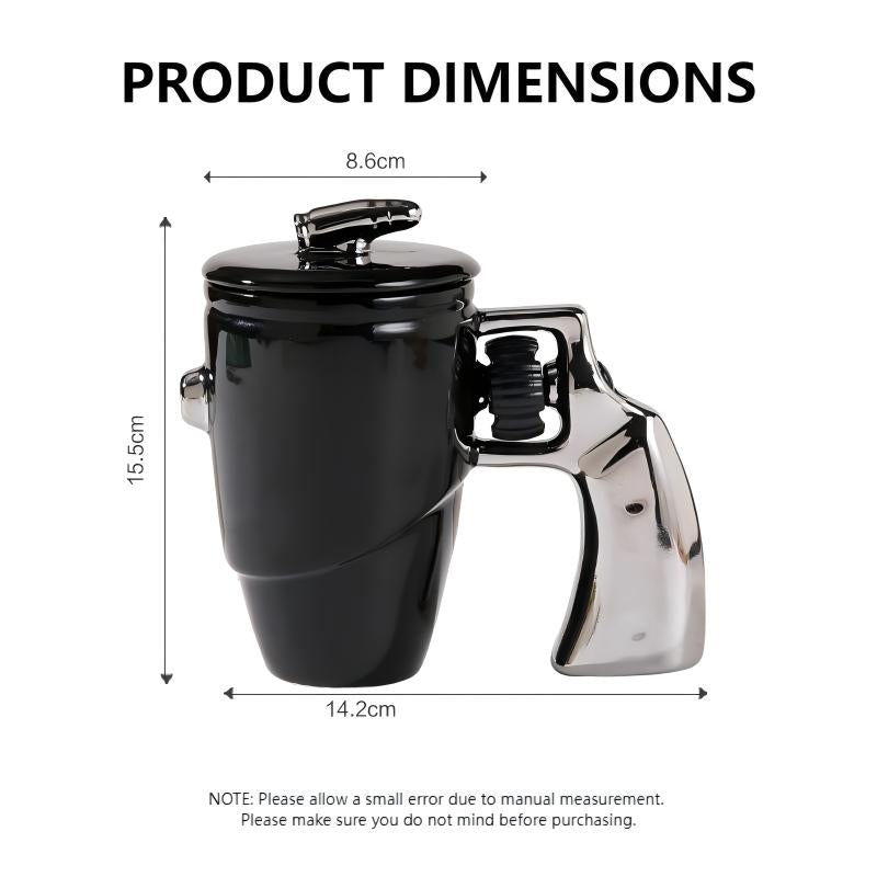 EGYEDI REVOLVER KIALAKÍTÁS: Tűnj ki a tömegből ezzel a kreatív kialakítású bögrével. A jellegzetes pisztoly alakú fogantyú fantasztikus beszélgetésindító, és merész karaktert ad a napi kávé- vagy teázás rutinodnak