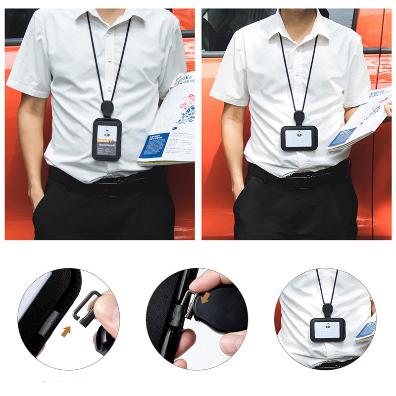 VISSZAHÚZHATÓ ZSINÓR – Könnyedén beolvashatja vagy lehúzhatja a kártyákat anélkül, hogy le kellene vennie a nyakpántot. A visszahúzható zsinór gyors és kényelmes hozzáférést biztosít, így ideális dinamikus munkakörnyezetekben és biztonságos épületekben.
