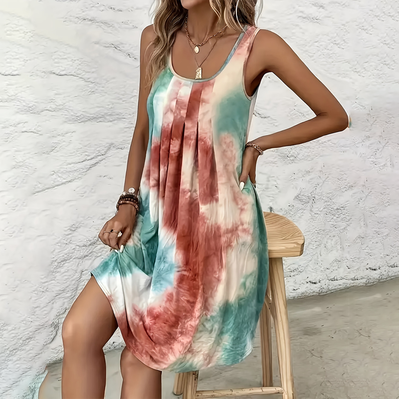 KARCSÚ UJJATLAN U-NYAKKIVÁGÁS - Az ujjatlan U-nyakú kialakítás hűvös és kényelmes marad a meleg időben, miközben elegánsan kiemeli a dekoltázsát. Könnyű és légáteresztő, ez a ruha tökéletes a nyári kirándulásokhoz, strandoláshoz vagy alkalmi sétákhoz.