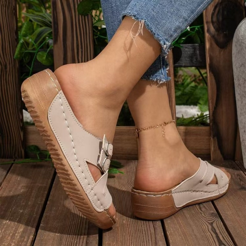 KÉNYELMES KLINCSALAP: Az ék alakú platformmal tervezett szandálok természetes magasságnövekedést biztosítanak anélkül, hogy a stabilitás vagy a kényelem rovására mennének.