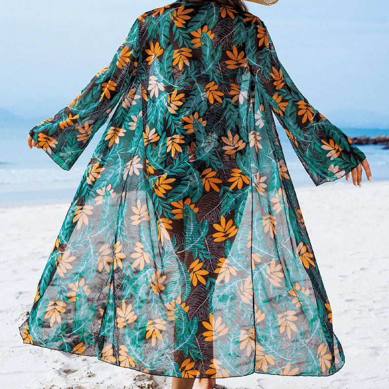DIVATOS VIRĂGMINTĂS: Az Ă©lĂ©nk virĂĄgmintĂĄs Ă©s a kimonĂł fedĆhuzat stĂlusos, elegĂĄns Ă©s szexi strandruha kombinĂĄciĂłt alkot.