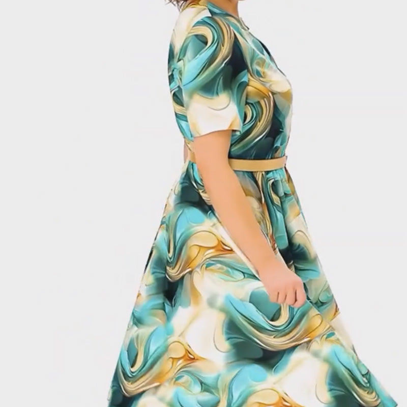 ELEGÁNS NYOMTATOTT DIZÁJN - Ez a ruha lenyűgöző, divatos mintával rendelkezik, amely egy csipetnyi kifinomultságot és stílust kölcsönöz, így tökéletes alkalmi kirándulásokra, partikra vagy különleges eseményekre, biztosítva, hogy mindig kitűnj.